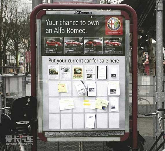 你想出售自己的汽車嗎,貼張尋購帖吧!阿爾法羅密歐公司用侯車亭的方式幫助乘客銷售自己的二手車,據(jù)說不到一周,就全被貼滿了……