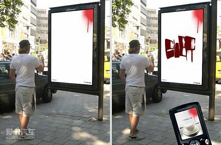 高科技候車亭廣告,通過您手機的藍牙,可以把你手機上的涂鴉即時共享到候車亭的大燈箱上……